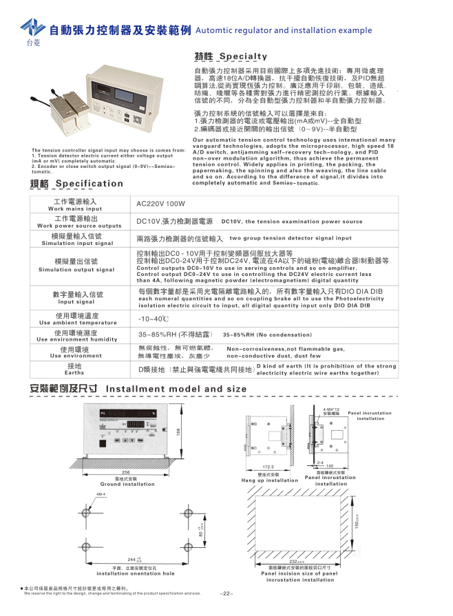 半自動張力控制器規格及安裝范例尺寸圖如下: